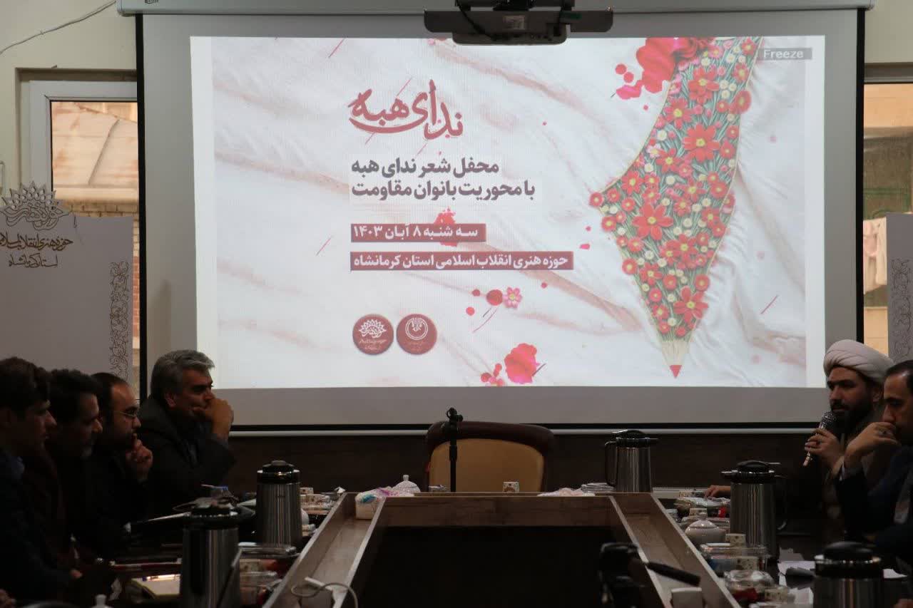 به گزارش خبرنگار شهر روشن از کرمانشاه، محفل شعر ندای هبه با محوریت بانوان عرصه مقاومت در کرمانشاه به همت حوزه هنری استان و سازمان تبلیغات اسلامی کرمانشاه و جمعی از مسئولان ذیربط و شاعران و هنرمندان استان برگزار شد.